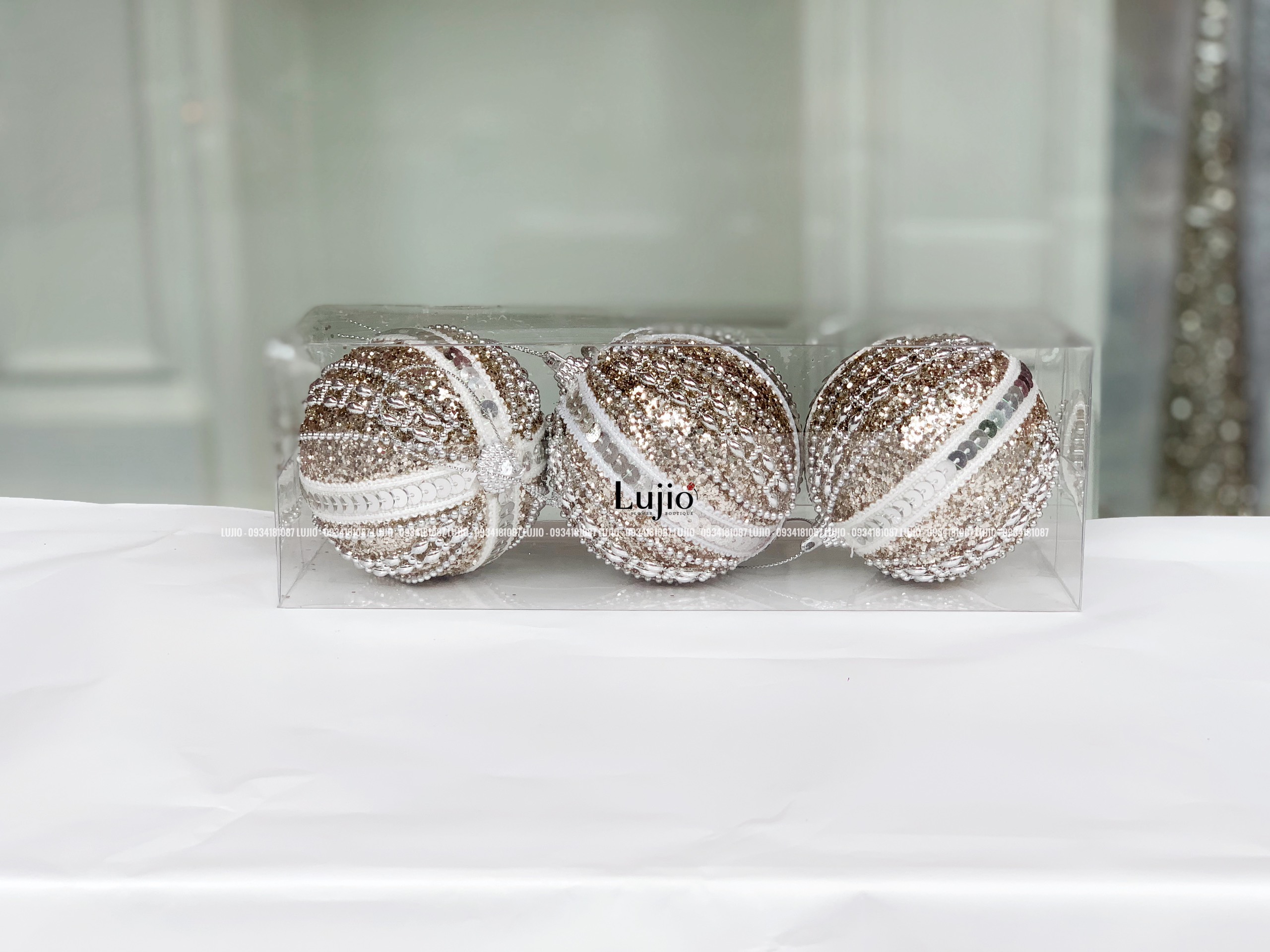 Hộp châu đính viền trắng lấp lánh: 3 quả/hộp