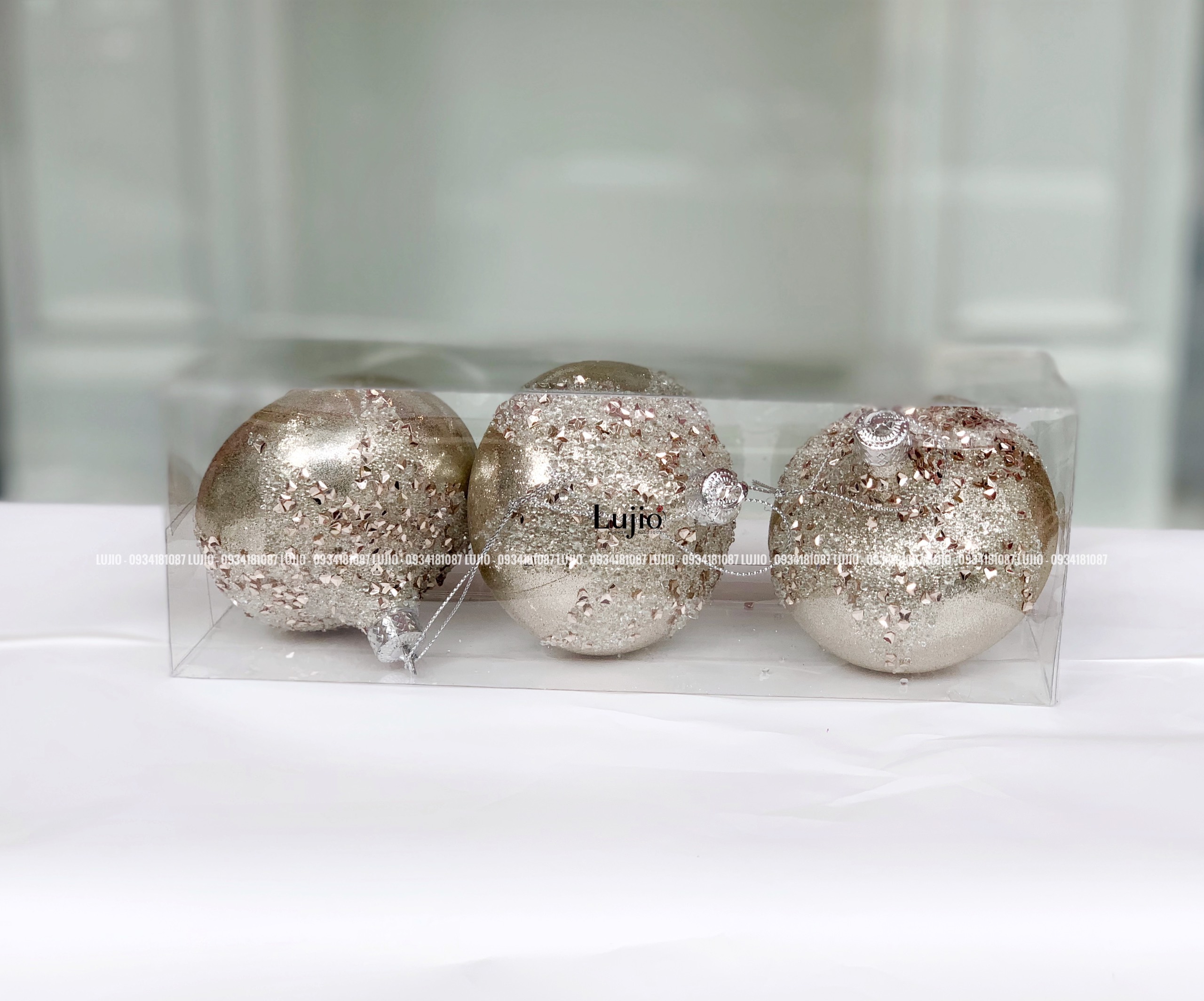 Hộp châu Cà na đính ngọc: 3 quả/hộp màu Champagne